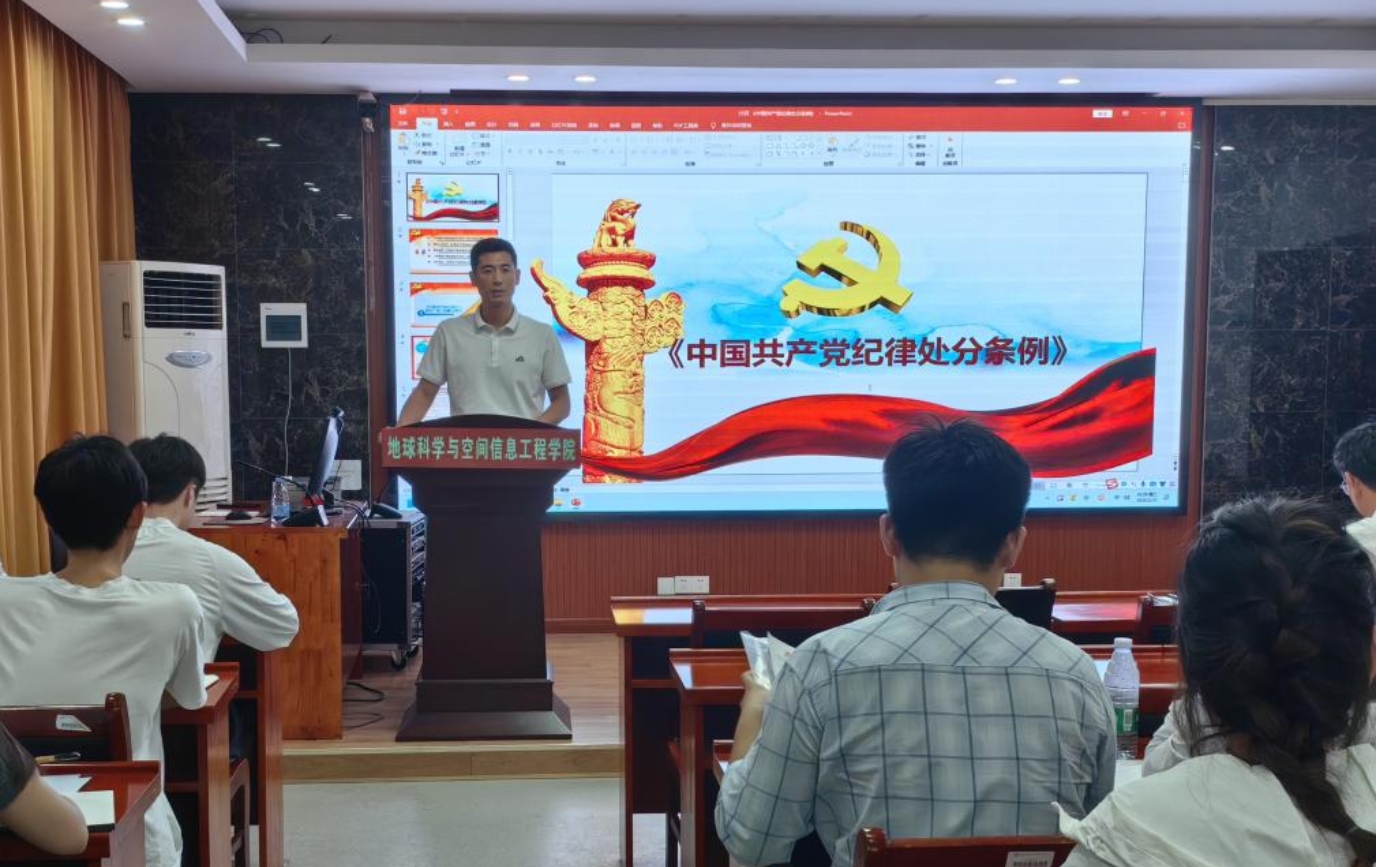 根据党纪学习教育工作安排,为加强各支部党员的纪律教育,提高党性修养,让支部成员做到学纪、知纪、明纪、守纪。2024年5月21日,久久视频 党委副书记崔皓以党纪学习为主题,在地学楼206会议室为地质系、地理系和测绘系三个学生党支部上党课。