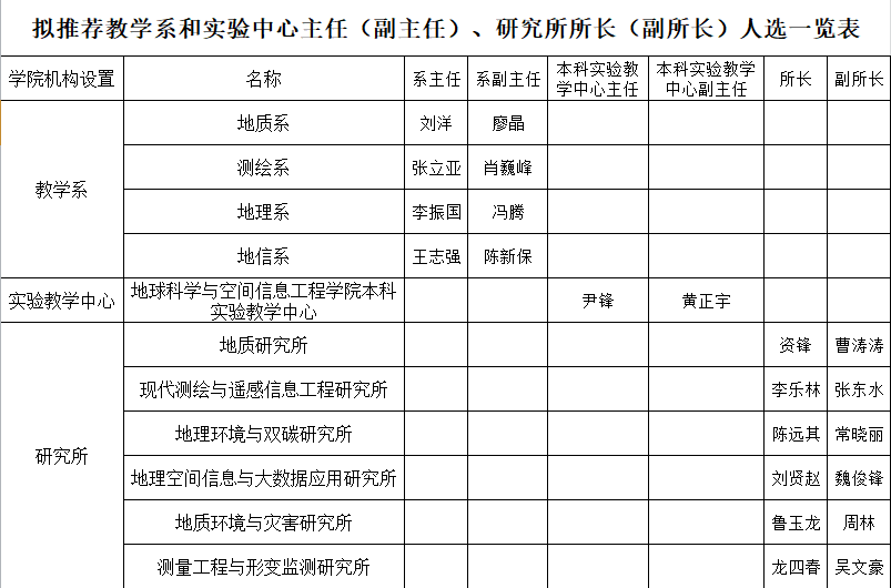 教学系和实验中心主任(副主任)、研究所所长(副所长)民主推荐公示