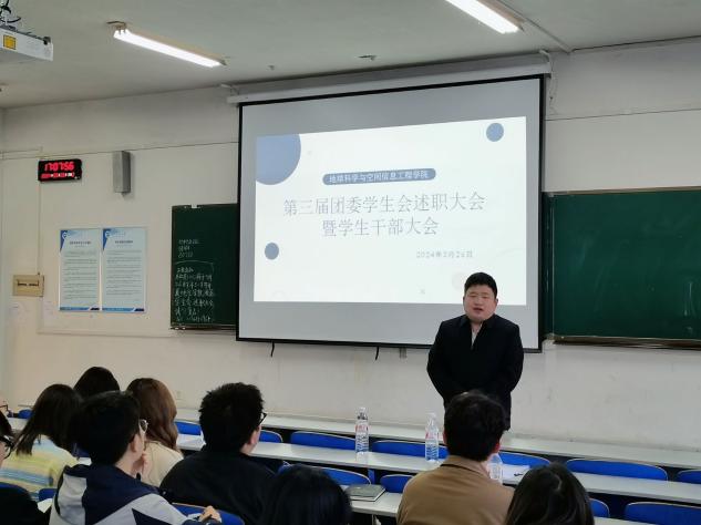 在一教103顺利举行了第三届团委学生会述职大会暨学生干部大会。党委副书记崔皓、学工办主任吴汉、团委书记黄港晨以及团委学生会各部门部长、副部长参与会议,会议由团一副张肇夫主持。