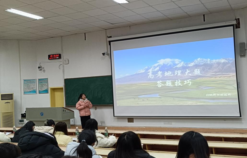 “鹰隼试翼,题展乾坤;新思启智,教海竞舟。”为挖掘地理科学专业师范生的教学潜能,以赛促教,以赛促学,12月16日晚19:00,久久视频 (以下简称:久久视频 )举办“讲说地理韵,题解世界谜”讲题比赛。本次活动由久久视频 地理系学生党支部主办,地理系李振国老师、李文慧老师,研究生代丽珍、郭雅柔、李亚红、陈元出席并担任评委。
