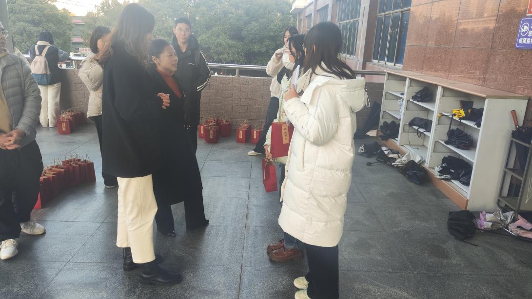 在礼包发放过程中,罗玺老师一边发放着礼包,一边与考研学子们进行着亲切的交流,悉心询问着同学们最近的学习以及生活近况,鼓励同学们专心备战考研,学院永远是他们坚实的后盾,并反复叮嘱着同学们不要太过焦虑,相信有付出就会有收获。