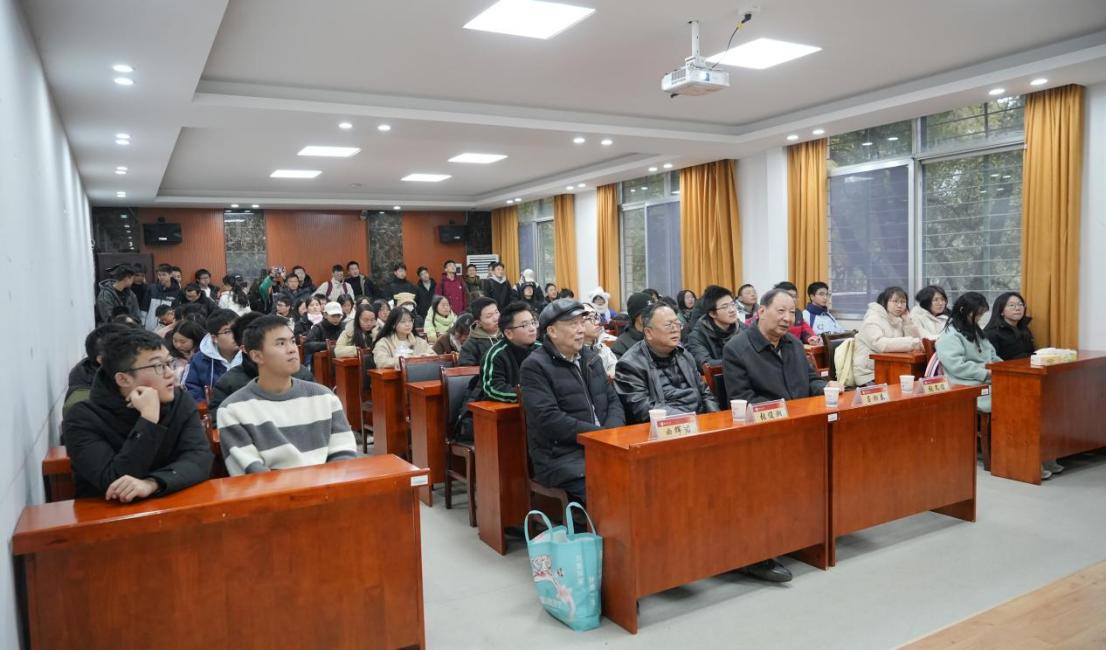 曹运江教授对本次讲座进行总结发言,他指出赏石文化融合自然之美与人文艺术,彰显中华民族对自然之美的独特理解和尊重。在新时代,赏石文化更是与地质学、古生物学等有紧密而奇妙的联系,为大众提供更深入理解和欣赏自然的机会和途径。通过湘潭奇石文化进校园讲座,宣讲湘潭各种特色奇石,向科大当代大学生传播湘潭”三石”文化。主要涵盖湘乡鱼龙石、法华山中华沟鳞鱼、仙女山笔石、湘潭矿石、红石毛泽东、乌石彭德怀、白石齐白石、科大校园奇石等。共同弘扬古生物奇石文化和湘潭三石文化,为扩大湘潭奇石文化的全国影响,贡献科大智慧。