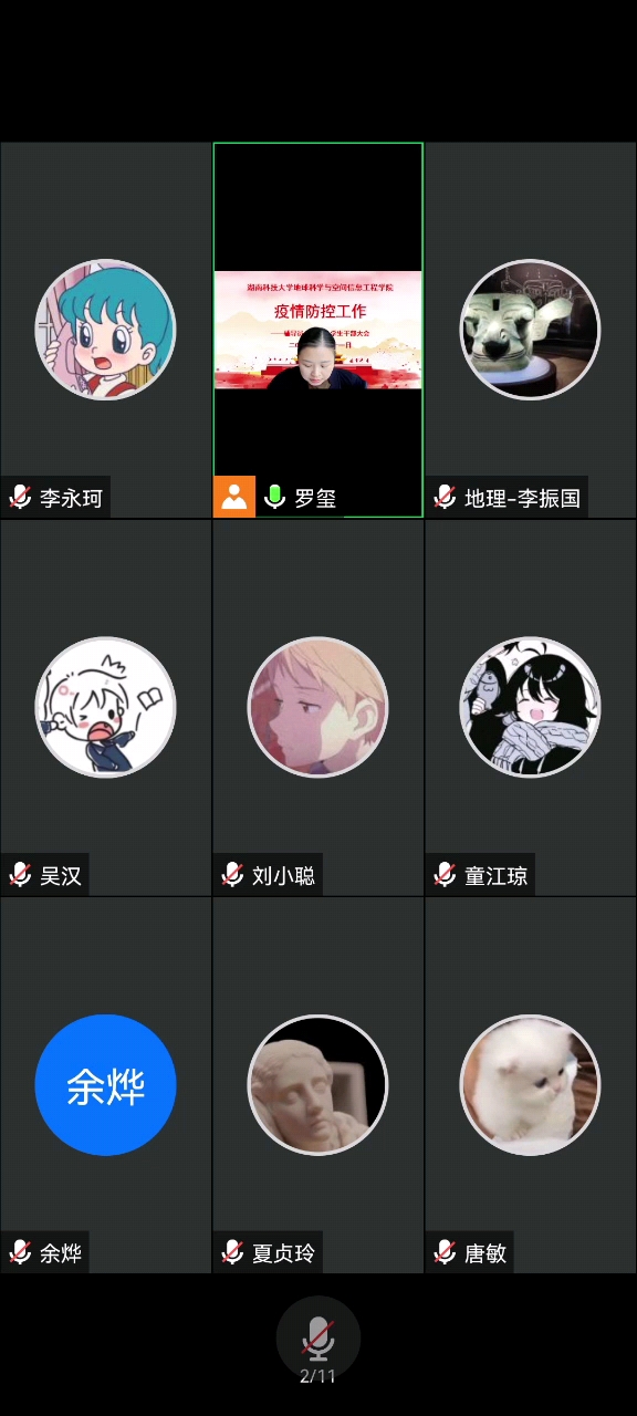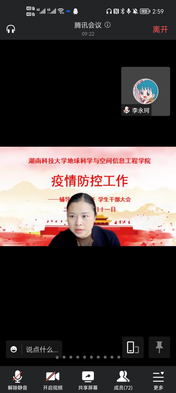 为进一步做好校园疫情防控管理工作,确保师生健康安全,10月11日15:00,久久视频 通过腾讯会议平台召开线上疫情防控管理工作会议。学院相关辅导员、班主任、主要学生干部等参加了会议。会议由院党委副书记罗玺主持。