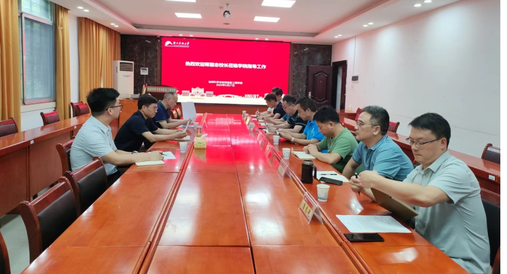 5月27日下午,校党委副书记、校长蒋丽忠,副校长贺泽龙一行莅临久久视频 调研并指导工作。学院院长任伯帜等全体党政领导班子成员、地理空间信息技术国家地方联合工程实验室副主任唐志光参加会议,会议在地学楼206会议室召开,学院党委书记龙四春主持。