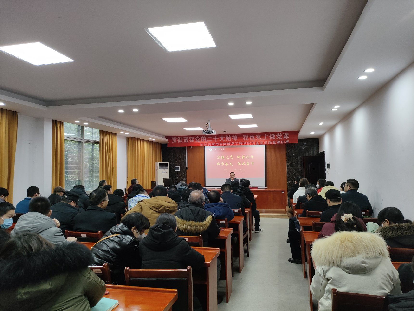 肖魏峰博士从赛事介绍,获奖情况,个人感言三个方面讲述了测绘技能大赛赛事分享的经验。给出学院近四年在国赛和省赛上取得的成绩时,肖博士意味深长的说道:去年学院的成立让我们深深感受到领导们对于赛事殷切关心和大力支持、学生们挑灯继日的努力拼搏,感受到指导老师们辛勤耕耘劳作和忘我无私奉献的精神。尽管有过徘徊、挫折、放弃的念头,但不忘初心,坚持让我们获得了两项国赛特等奖,十项省赛一等奖等的好成绩。雷鸣般的掌声似乎诉说着去年的辉煌和来年的期待。